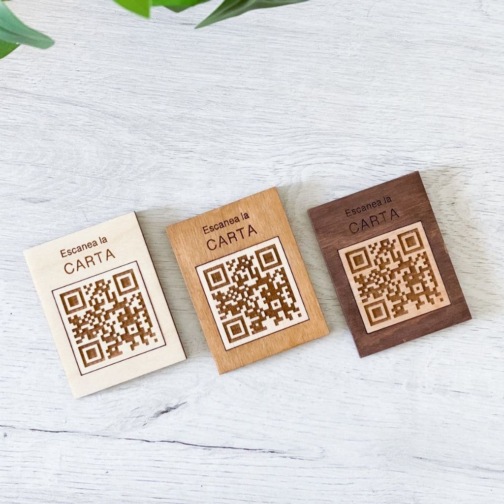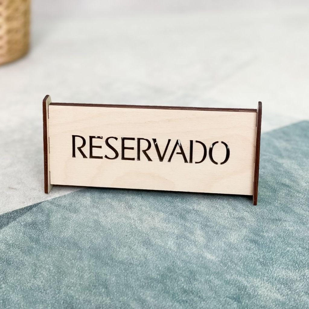 Nuestra gama incluye desde carteles ‘Reservado’ hasta portafacturas de madera y tarjetas QR, todos diseñados para complementar la estética de tu negocio.