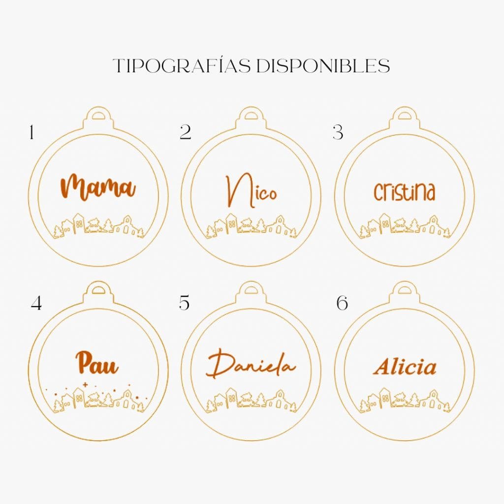 Bola de Navidad hecha en madera y metacrilato blanco, personalizada para todos los miembros de la familia y ¡para regalar si así lo deseas!