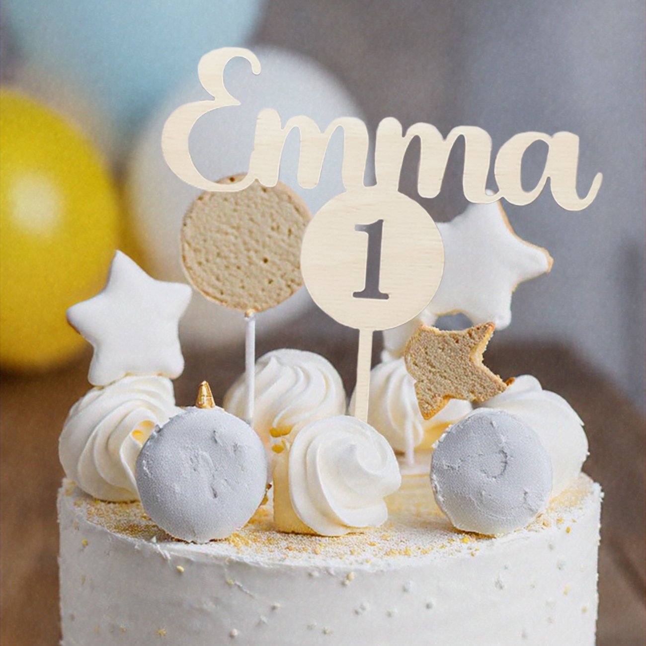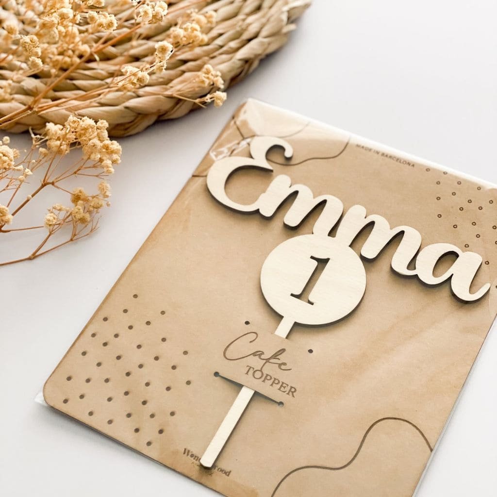Decora bonito el pastel de tu peque con nuestro cake topper de madera personalizado con el nombre y los añitos que cumple.