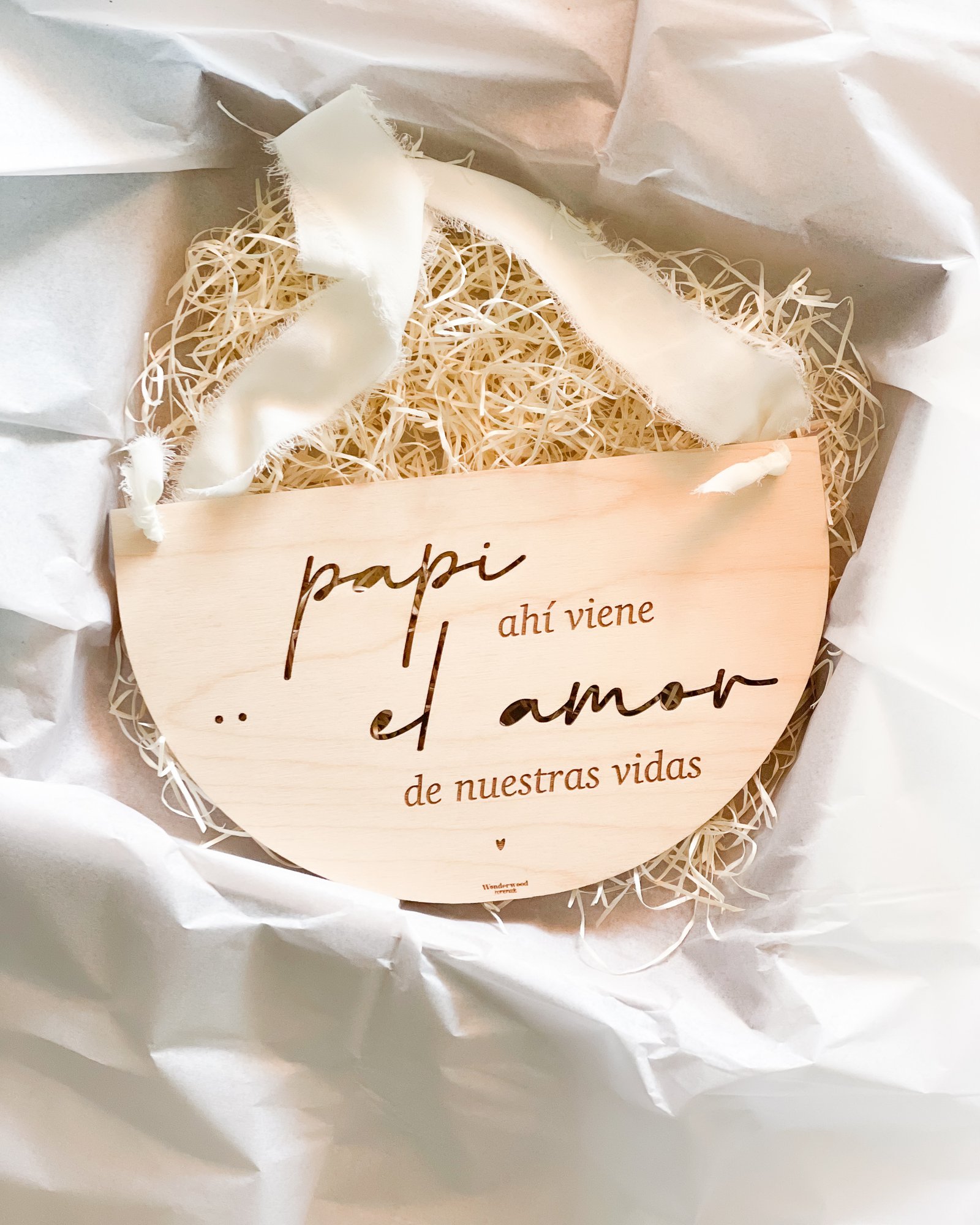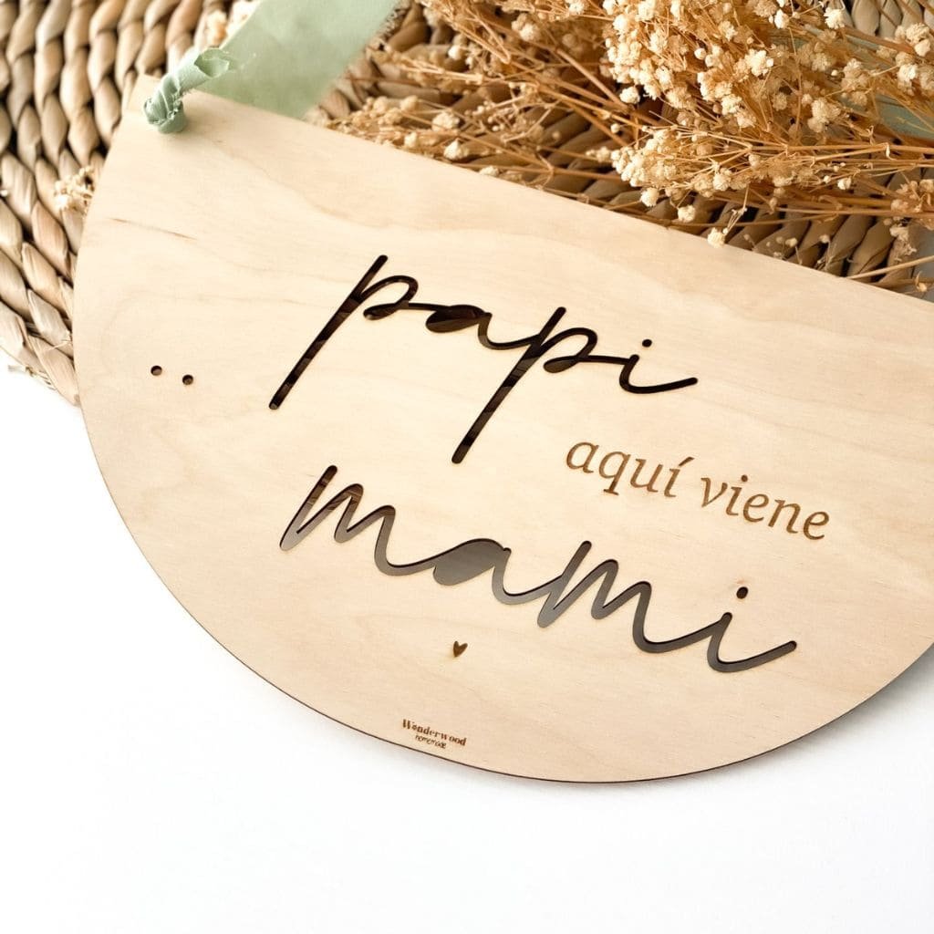 ¿Imaginas la cara que pondrá el papá cuando vea a tu peque con nuestro precioso cartel “Papi aquí viene mami” colgado?