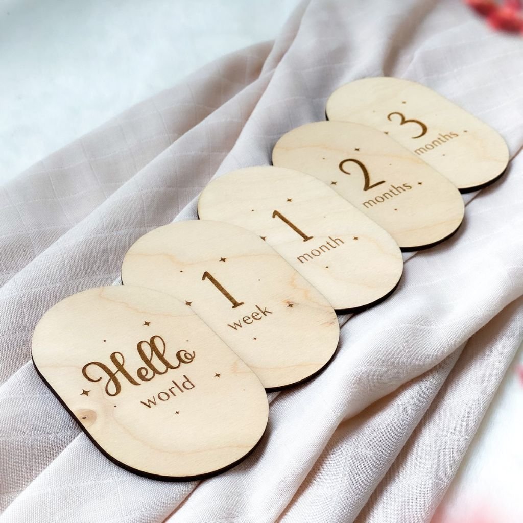 Inmortaliza el crecimiento de tu bebé mes a mes con este precioso cumplemes ovalado y con un estilo neutro.
