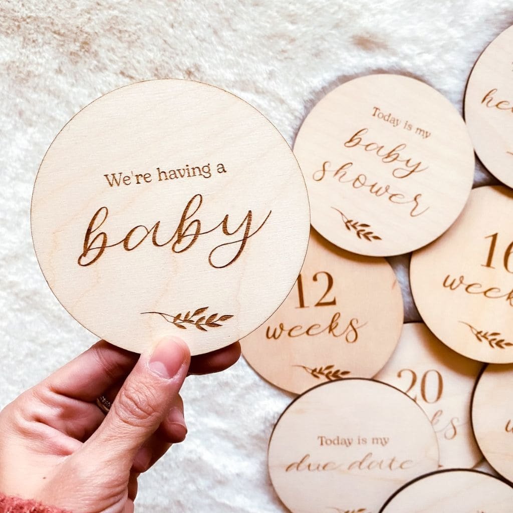 Captura el crecimiento de tu barriguita con nuestros discos semanales e hitos del el embarazo.