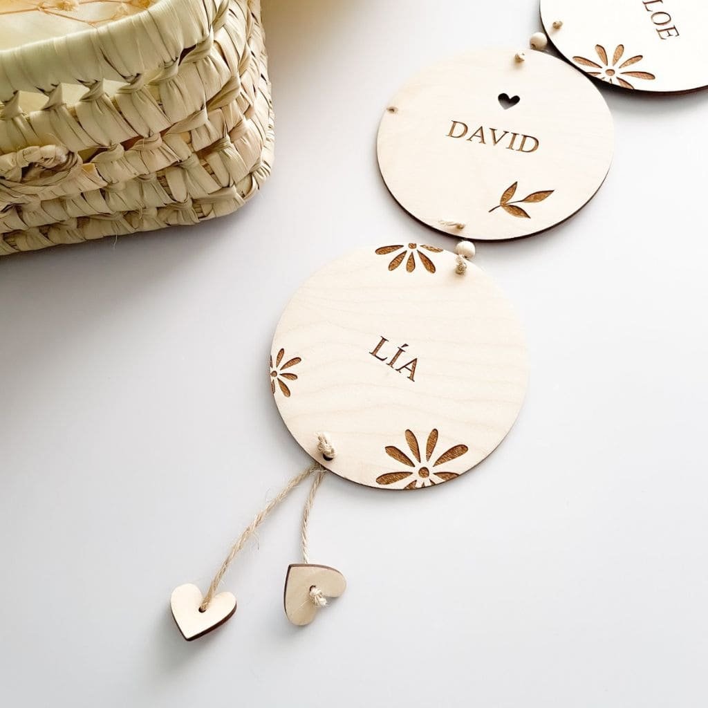 Sorprende a mamá o a la abuela con esta guirnalda decorativa con una placa dedicatoria y el nombre de los hijos o nietos, formando una guirnalda preciosa que atesorará para siempre.