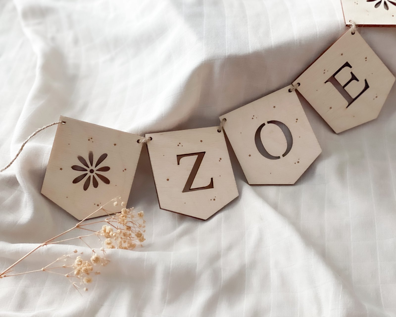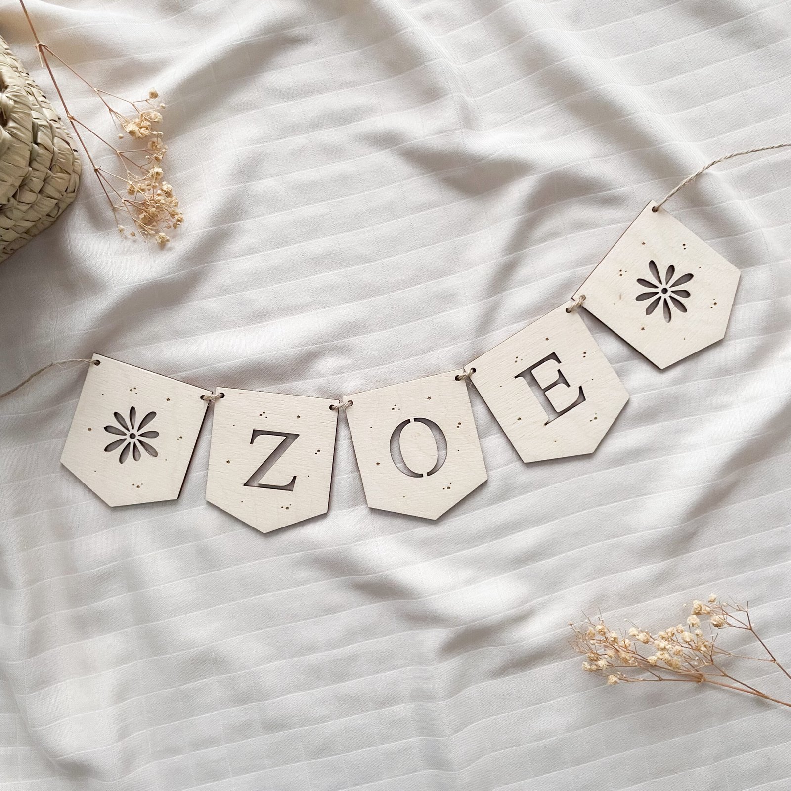 Añade un toque especial y personalizado a la habitación del bebé con nuestra guirnalda de madera personalizada con su nombre.