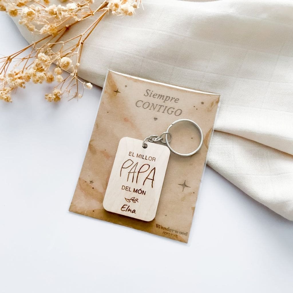 Llavero personalizado con la palabra Papá o Papi escrito de su puño y letra.