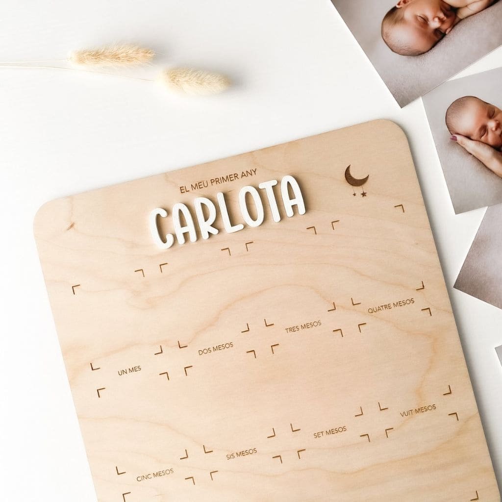 Fabricado en madera de abedul, este marco de fotos personalizado del primer año quedará genial en cualquier rincón de la casa y será un bonito recuerdo para el bebé cuando crezca y tenga curiosidad por saber cómo era cuando era pequeño.