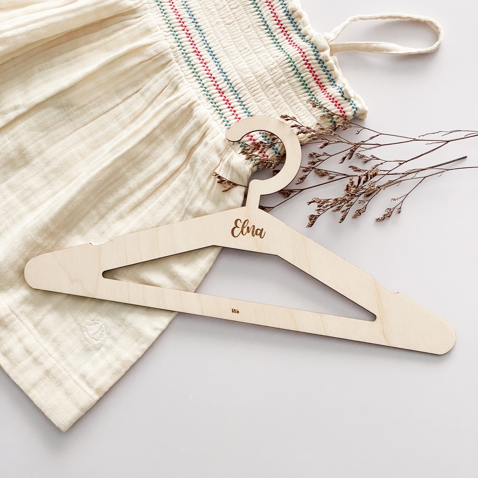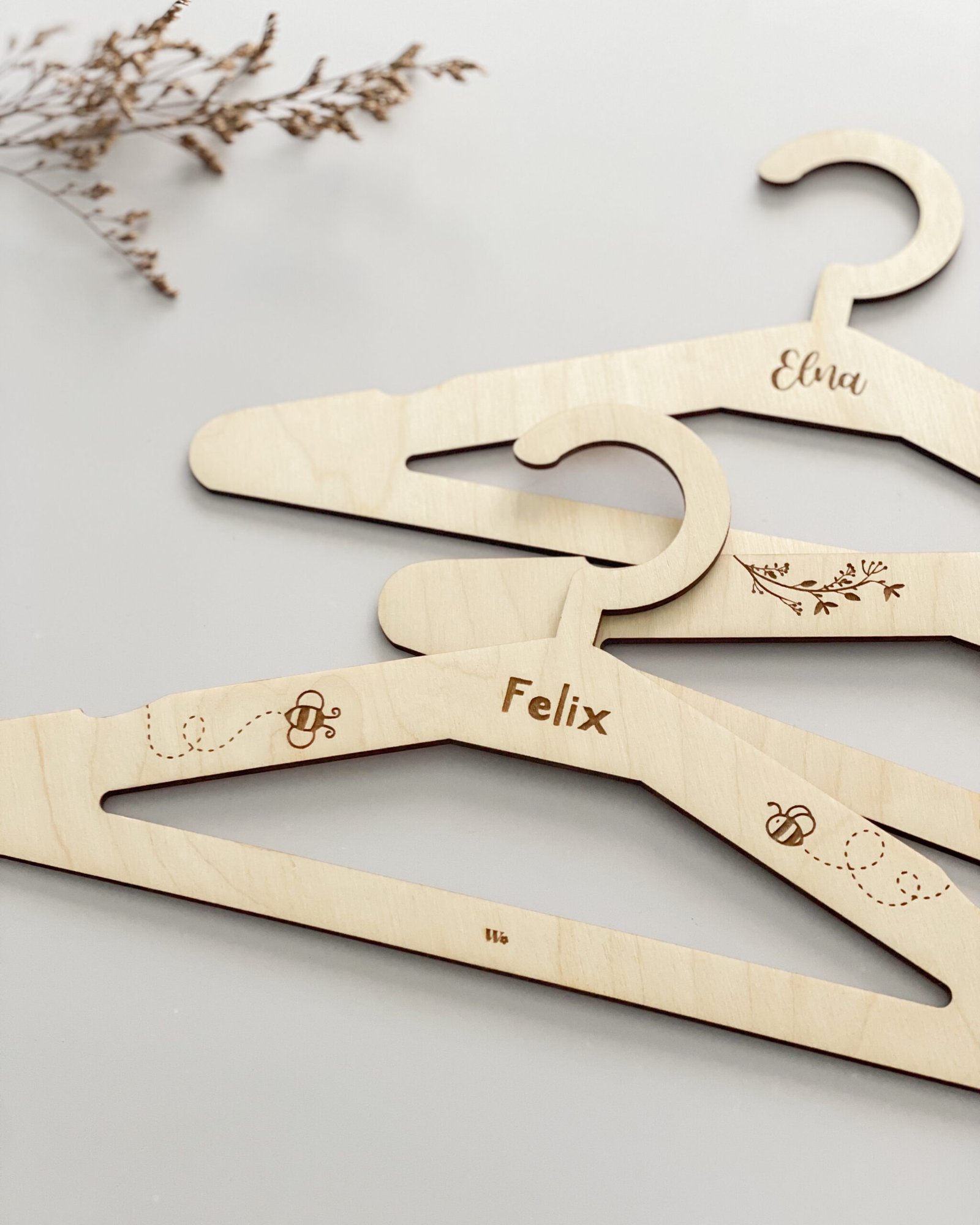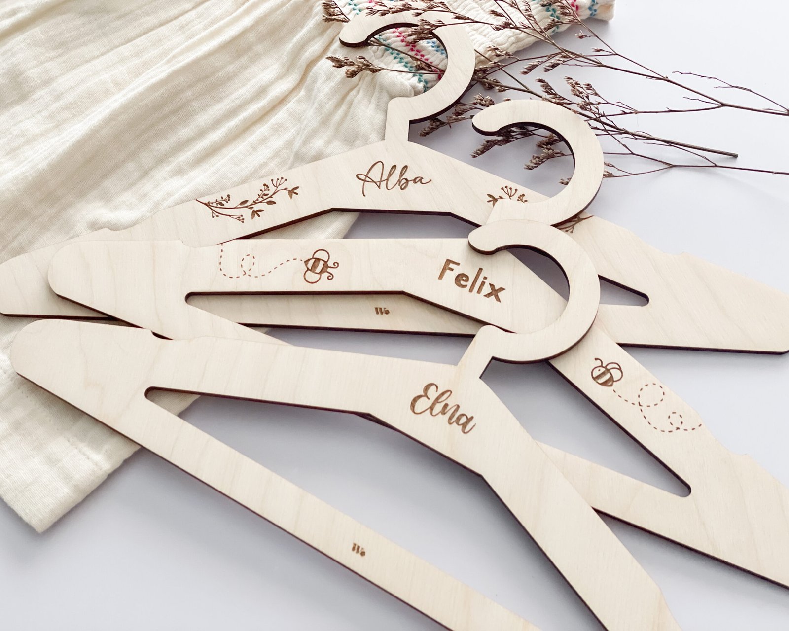 Con nuestras perchas de madera personalizadas no sólo tendrás tu ropa en orden en el armario sino que además, aportarás un toque natural y único al armario del bebé.