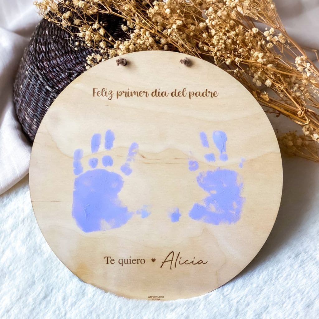 Estampa sus manitas en nuestra placa dedicatoria para celebrar su primer día del padre y sorpréndele con este detalle único, original y personalizado.