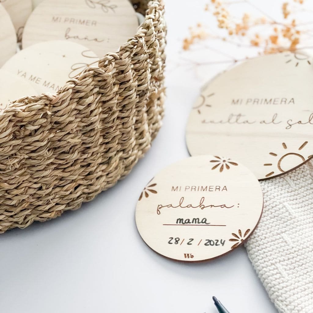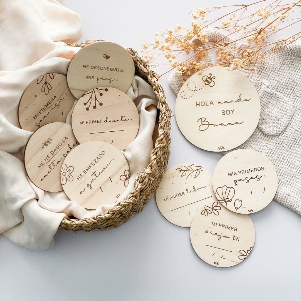 Plaquitas de madera para inmortalizar esas primeras veces y primeros hitos del bebé.